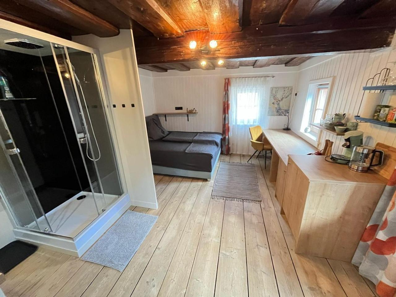 Apartment with Shower. This apartments standout feature is the fireplace. The apartment has 1 bedroom and 1 bathroom with a walk-in shower and free toiletries. Guests will find a stovetop, a refrigerator, kitchenware and an oven in the kitchen. The apartment also features a barbecue. This apartment features a tea and coffee maker, flat-screen TV with satellite channels, lake views, as well as fruit for guests. The unit has 1 bed. ;