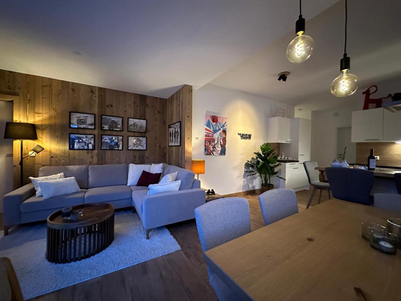 The apartment provides guests with a terrace, mountain views, a seating area, a flat-screen TV, a fully equipped kitchen with a dishwasher and an oven, and a private bathroom with walk-in shower and a hair dryer. A microwave, a fridge and stovetop are also available, as well as a coffee machine and a kettle. At the apartment complex, each unit includes bed linen and towels.