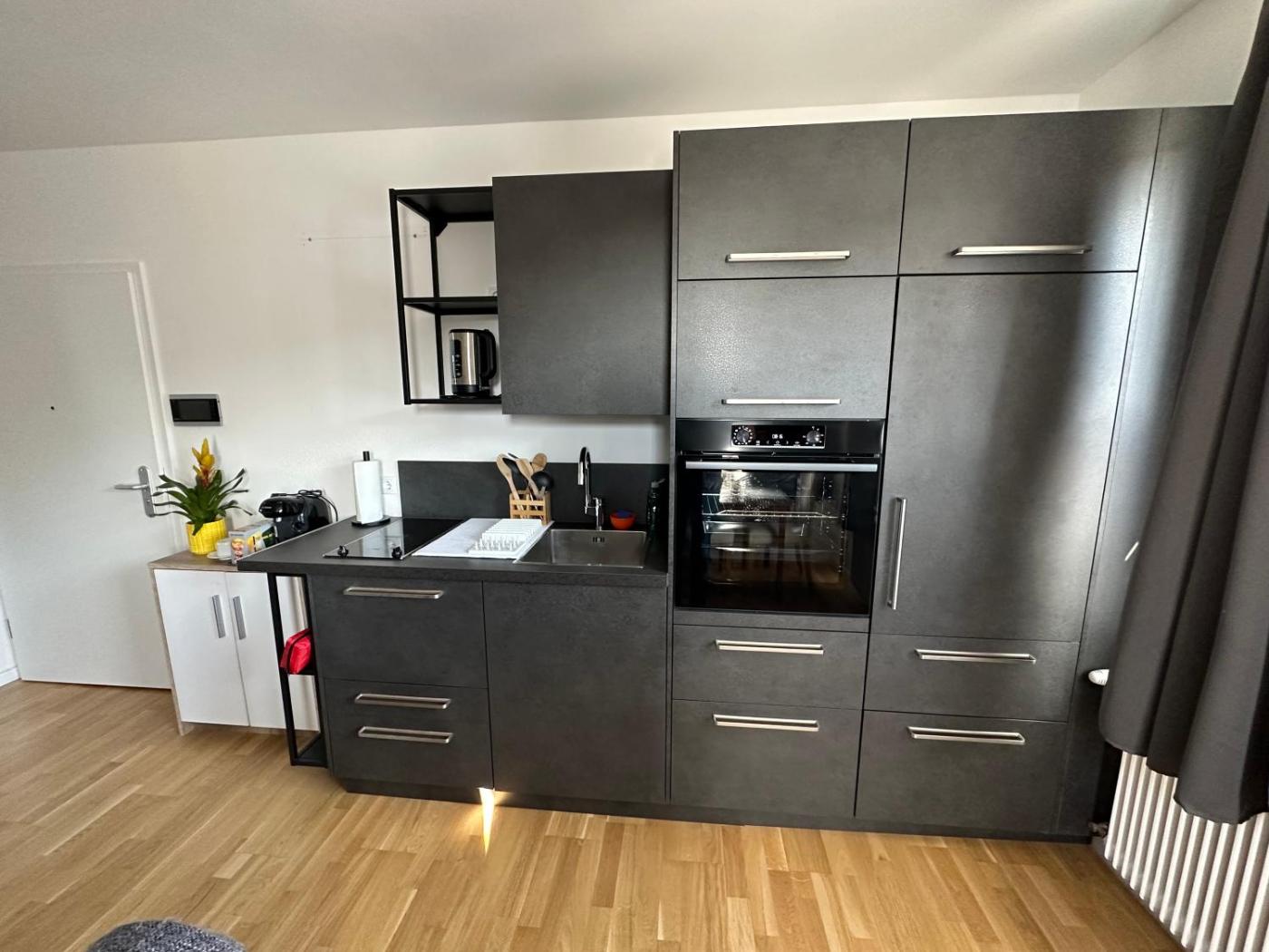 One-Bedroom Apartment. Boasting a private entrance, this apartment comes with 1 living room, 1 separate bedroom and 1 bathroom with a shower and a hairdryer. In the well-fitted kitchenette, guests will find a stovetop, a refrigerator, kitchenware and an oven. The apartment features a flat-screen TV with streaming services, a washing machine, a tea and coffee maker, a dining area as well as city views. The unit has 2 beds.