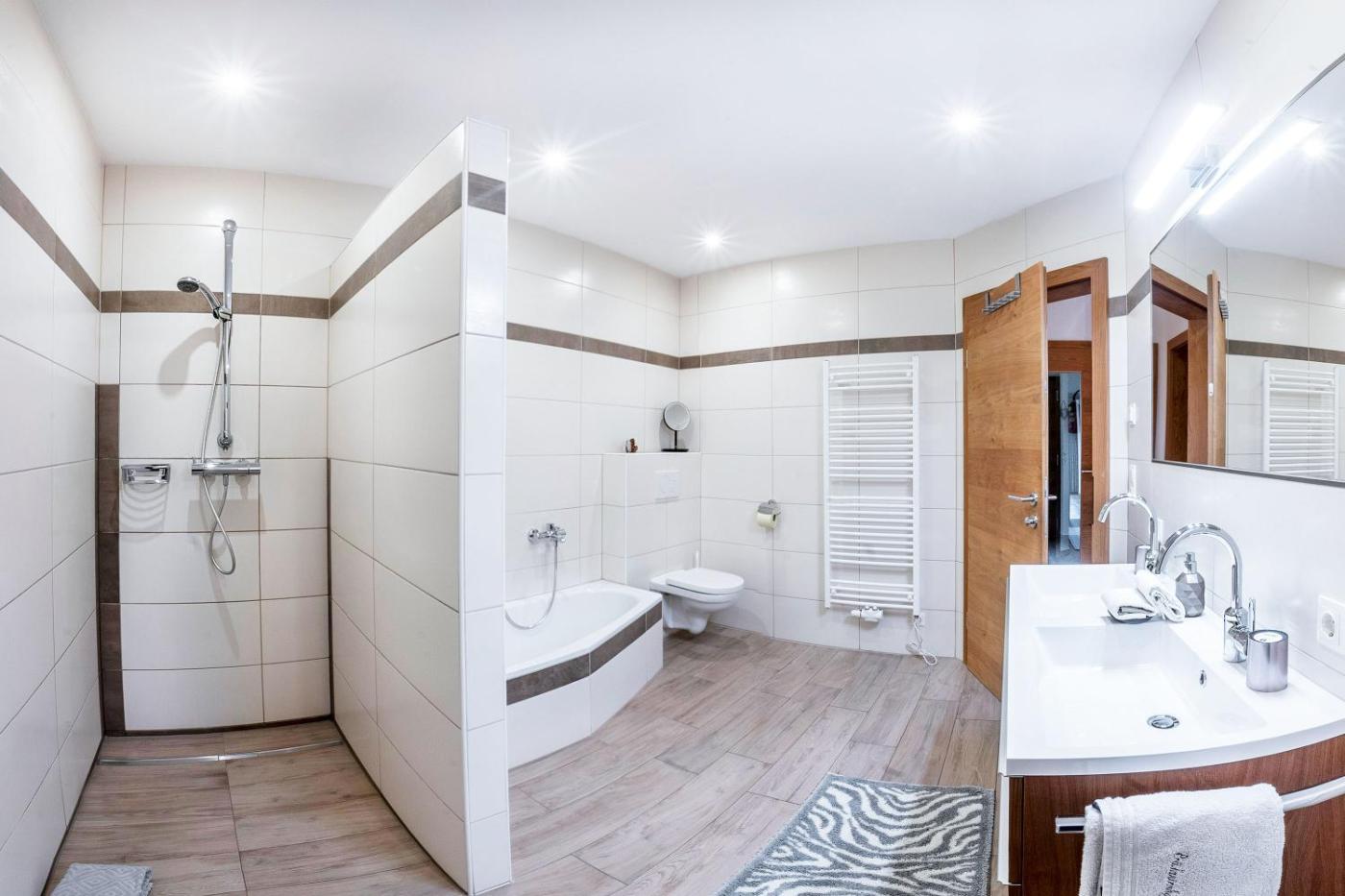 Three-Bedroom Apartment. Featuring a private entrance, this spacious apartment also comprises 1 living room, 3 separate bedrooms and 1 bathroom with a shower. The well-equipped kitchenette features a stovetop, a refrigerator, a dishwasher and kitchenware. Boasting a balcony with garden views, this apartment also provides a coffee machine and a flat-screen TV. The unit offers 3 beds.