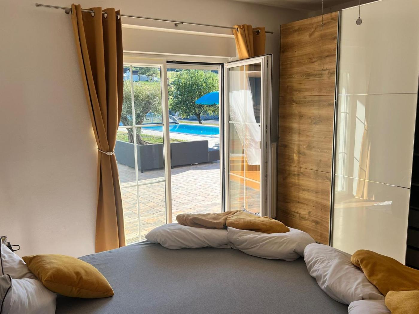 One-Bedroom House. This holiday homes special features are the pool with a view and the hot tub. Featuring a private entrance, this holiday home comprises 1 living room, 1 separate bedroom and 1 bathroom with a bath and a shower. The well-equipped kitchen has a stovetop, a refrigerator, a dishwasher and an oven. This wheelchair accessible holiday home features a coffee machine, a seating area with a flat-screen TV and a roll-in shower. The unit offers 2 beds.