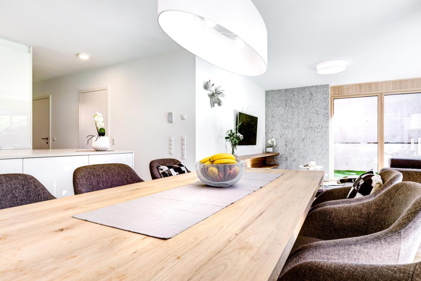All units comprise a seating area with a sofa, a dining area, and a fully equipped kitchen with various cooking facilities, including a dishwasher, an oven, a toaster and a fridge. A balcony with an outdoor dining area and mountain views is offered in each unit. The units in the apartment complex are equipped with a flat-screen TV with satellite channels and with cable channels.