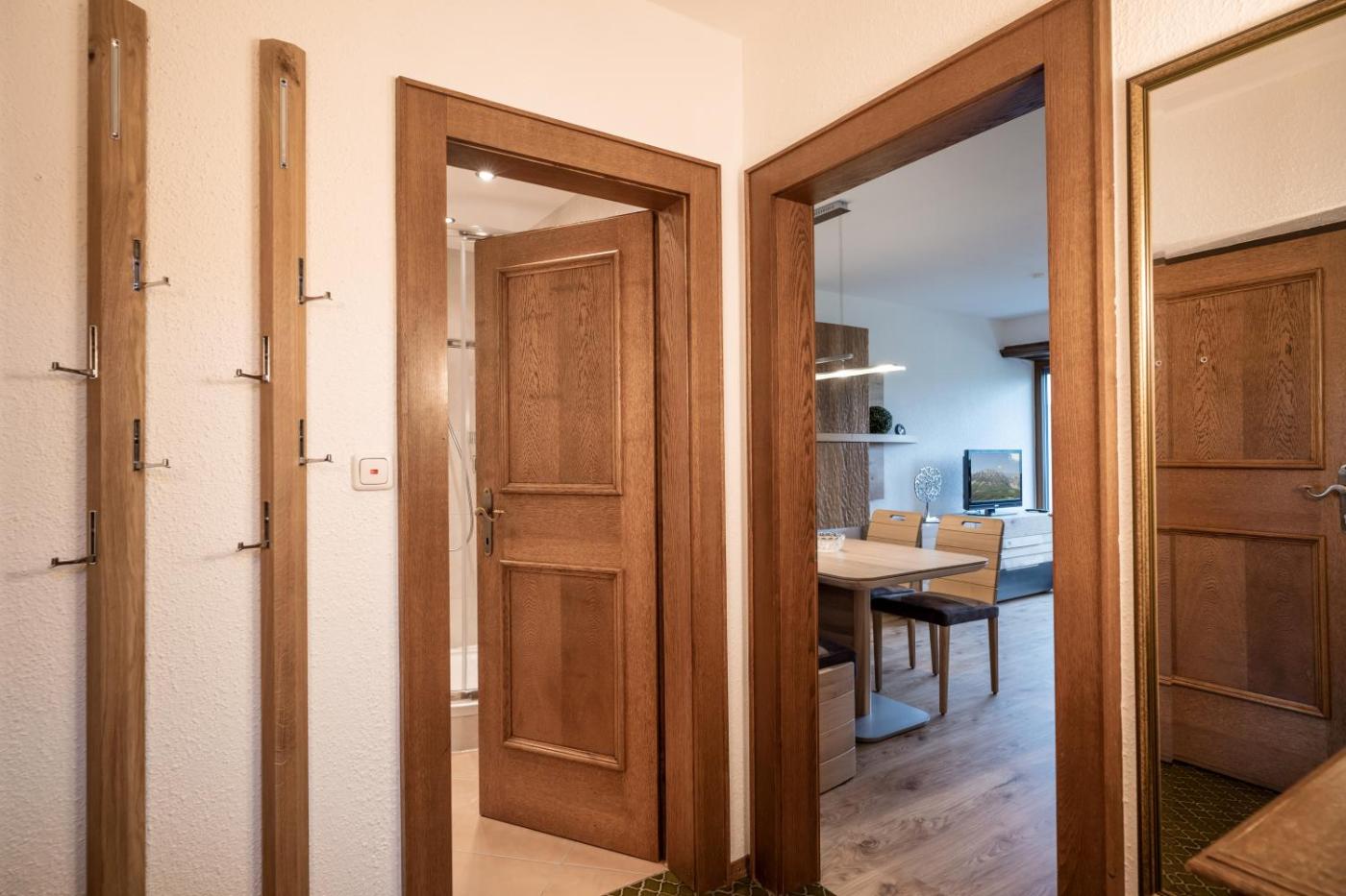 One-Bedroom Apartment with Shower. This apartment comes with 1 living room, 1 separate bedroom and 1 bathroom with a shower. Guests can make meals in the kitchen that features a stovetop, a refrigerator, kitchenware and an oven. The apartment features a TV with cable channels, a washing machine, soundproof walls, a coffee machine as well as mountain views. The unit has 2 beds.