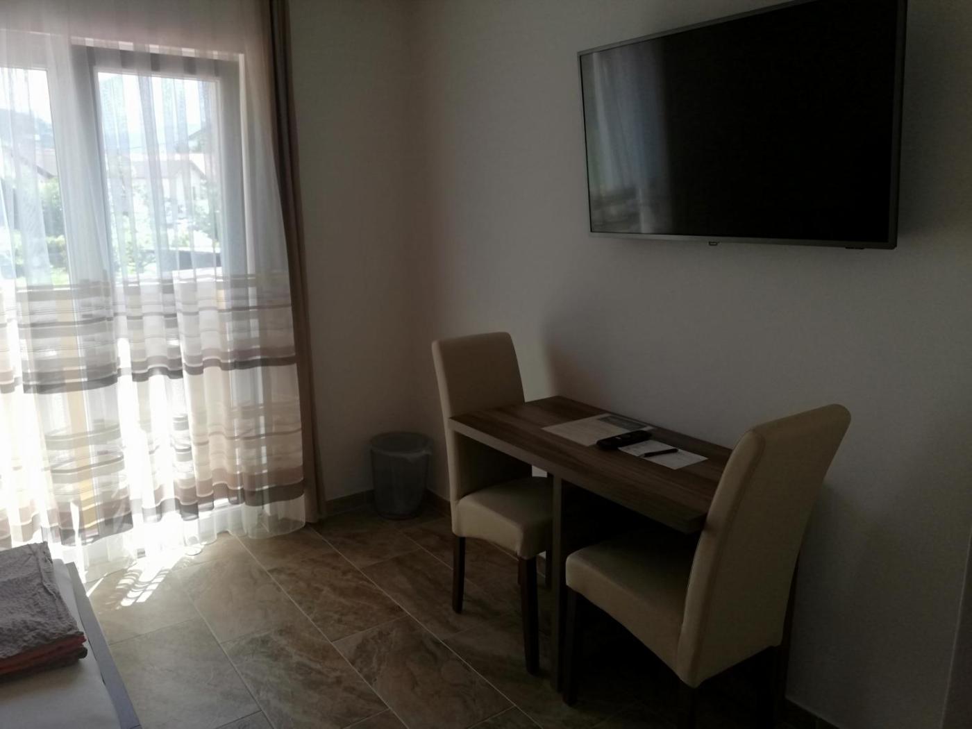 Deluxe Double Room with Shower. The double room features a private bathroom equipped with a walk-in shower and a hairdryer. The double room provides a flat-screen TV with streaming services, soundproof walls, a wardrobe, a tiled floor as well as mountain views. The unit offers 1 bed. ;