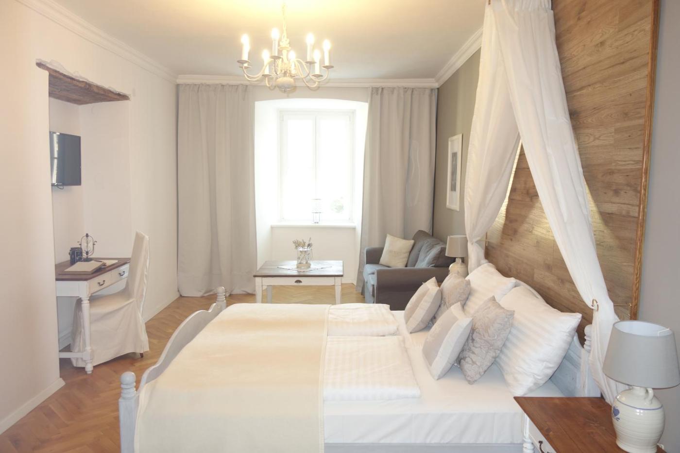Comfort Double Room with Balcony. Cozy room decorated in alpine-style. The balcony provides views of Friesach, the oldest town in Carinthia. ;