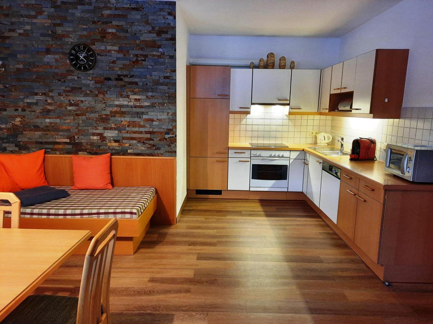 Guests at the apartment can enjoy skiing nearby, or make the most of the garden.