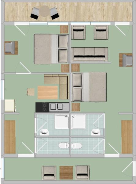 Obiekt jest dostosowany dla osób niepełnosprawnych, jednak dojście na wyższe piętra odbywa się tylko schodami. W okolicy 🌳 znajdują się meble ogrodowe, a także kryty basen 🏊 z podgrzewaną wodą, mały basen, brodzik oraz zjeżdżalnia wodna, dostępne bezpłatnie przez cały rok.