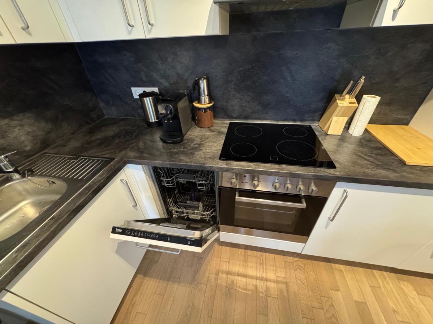 Two-Bedroom Apartment. This apartment comprises 1 living room, 2 separate bedrooms and 1 bathroom with a walk-in shower and a hairdryer. Guests can make meals in the kitchen that comes with a stovetop, a refrigerator, a dishwasher and kitchenware. The apartment provides a washing machine, soundproof walls, a tea and coffee maker, a flat-screen TV with streaming services, as well as ancourtyard view. The unit offers 2 beds.