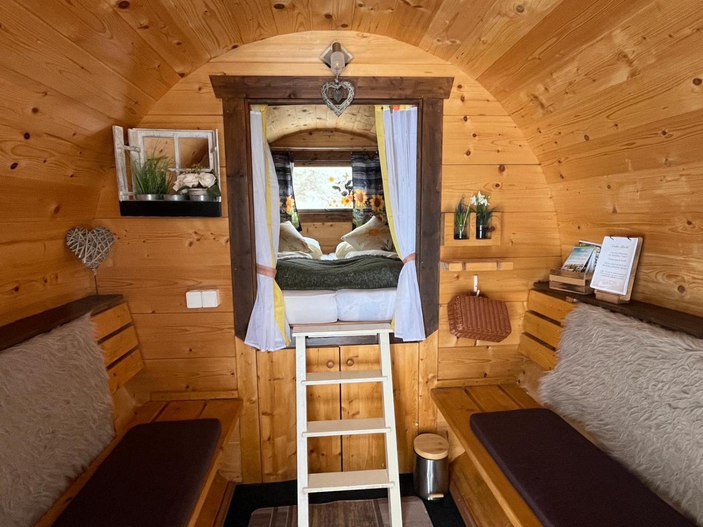 Sleeping Barrel. Featuring free toiletries, this chalet includes a shared bathroom with a walk-in shower. The chalet is furnished with a desk and a seating area and features a minibar, parquet floors and mountain views. The unit has 1 bed.