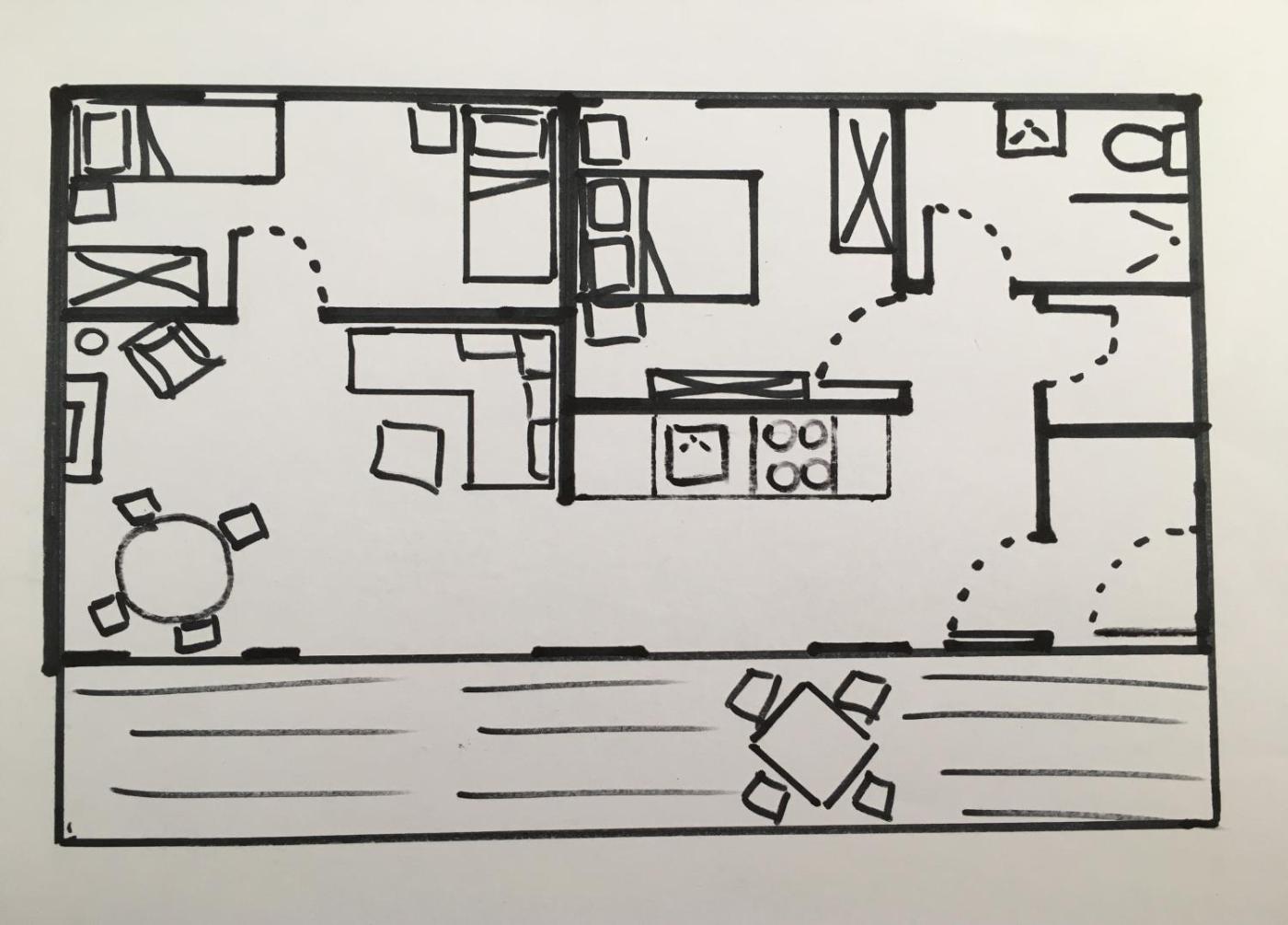Three-Bedroom Apartment. This spacious apartment comprises 1 living room, 3 separate bedrooms and 1 bathroom with a shower and free toiletries. Meals can be prepared in the kitchen, which comes with a stovetop, a refrigerator, a dishwasher and kitchenware. Featuring a terrace with mountain views, this apartment also provides a private entrance and a flat-screen TV with satellite channels. The unit offers 4 beds. ;