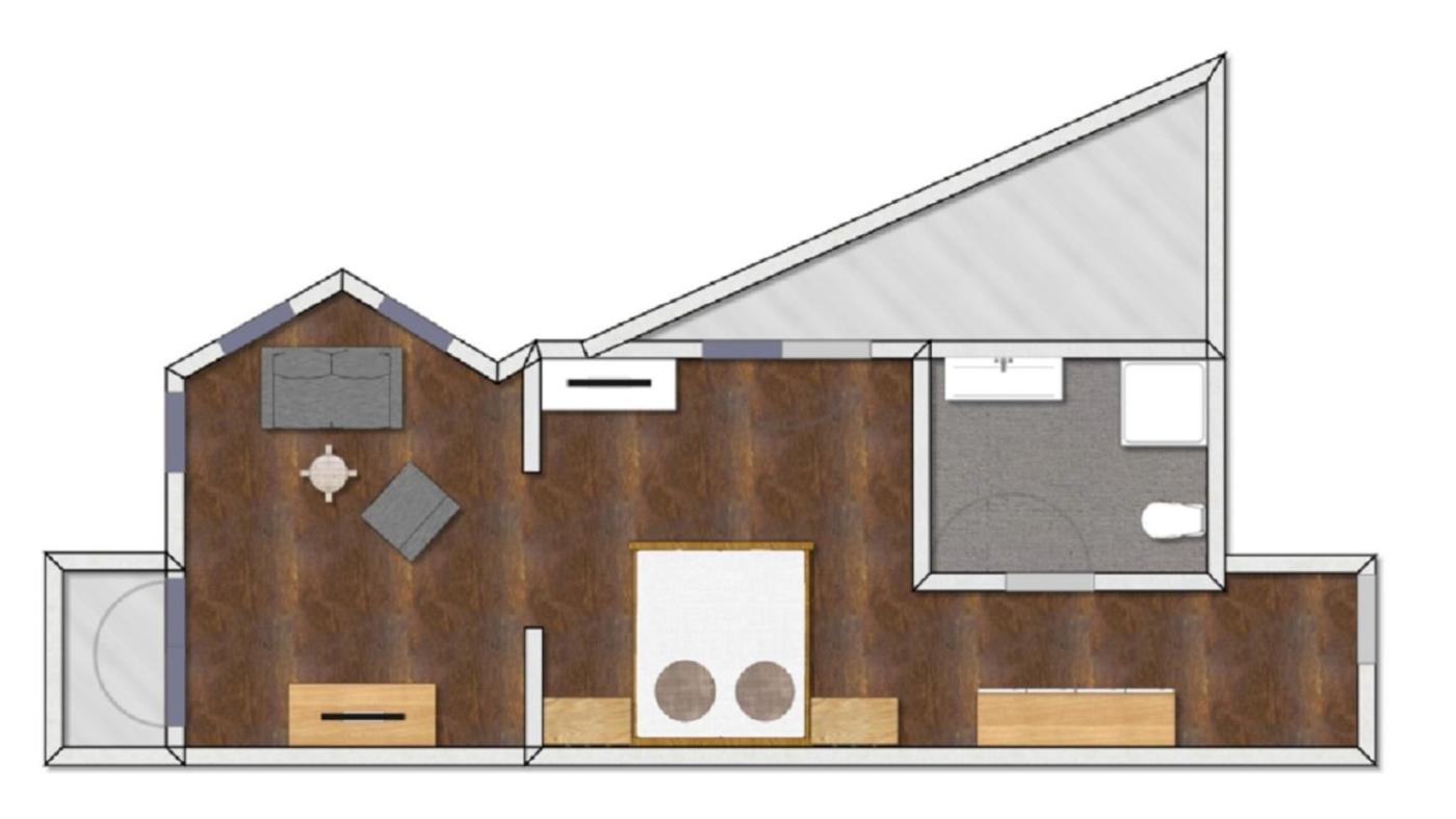 Deluxe Double Room. Consists of a combined bedroom living room with a sofa bed and a flat-screen TV with cable channels. ;