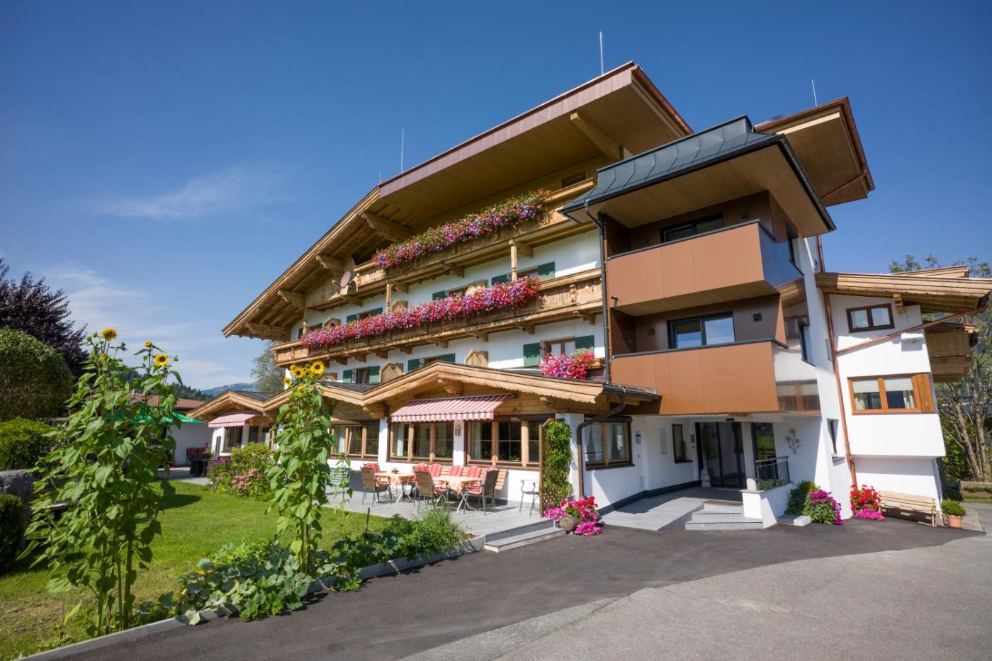 Situated 4.4 km from Golfclub Kitzbühel Schwarzsee in Kirchberg in Tirol, Frühstückspension Tannenhof features a ski pass sales point, ski storage space, a sauna and a hammam. With garden views, this accommodation offers a patio. There is a sun terrace and guests can make use of free WiFi, free private parking and an electric vehicle charging station.