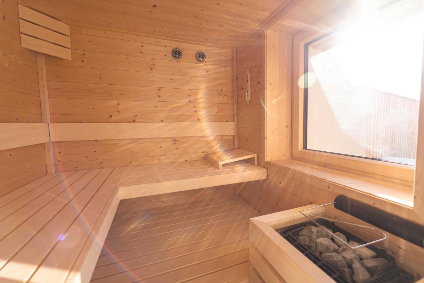 Superior Chalet. This chalets standout feature is the sauna. Boasting a private entrance, this air-conditioned chalet includes 1 living room, 1 separate bedroom and 1 bathroom with a shower and a hairdryer. Meals can be prepared in the kitchen, which is fitted with a stovetop, a refrigerator, a dishwasher and kitchenware. Featuring a terrace with garden views, this chalet also offers a coffee machine and a flat-screen TV. The unit has 2 beds.