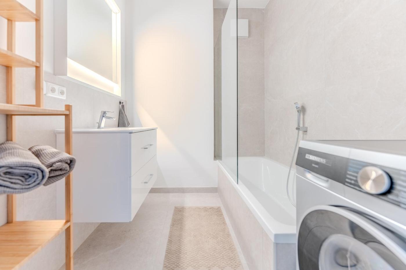 One-Bedroom Apartment. This spacious apartment is comprised of 1 living room, 1 separate bedroom and 1 bathroom with a bath and a hairdryer. The fully equipped kitchen features a stovetop, a refrigerator, a dishwasher and kitchenware. Featuring a balcony, this apartment also offers a washing machine, a tea and coffee maker and a flat-screen TV with streaming services. The unit offers 2 beds.