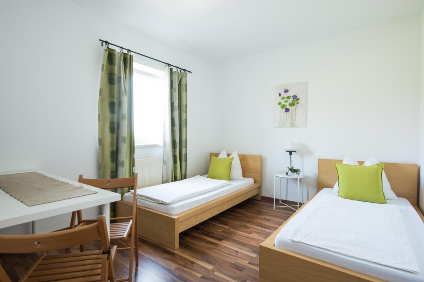 Standard Twin Room. The twin room features parquet floors, heating, as well as a private bathroom boasting a shower. This twin room provides a flat-screen TV. The unit has 2 beds. ;