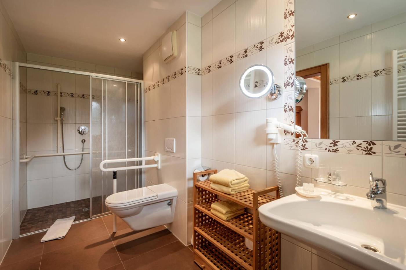 Double Room - Disability Access. The sauna is a top feature of this double room. The spacious double room features a wardrobe, a safe deposit box, a terrace with garden views as well as a private bathroom boasting a walk-in shower. The unit has 2 beds.