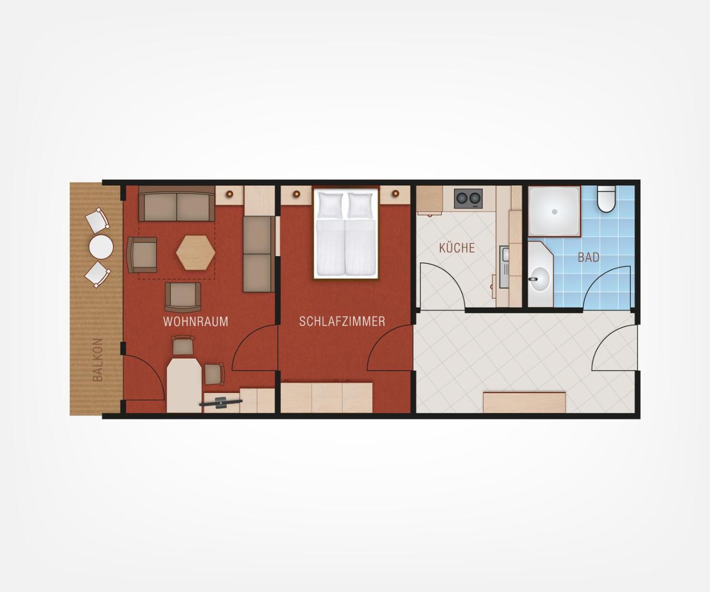 Apartment (4 Persons). These apartments have a separate bedroom and living room with a sofa bed for 2. A bathroom and a kitchen with a dining area are also featured.have a balcony or terrace. Breakfast and half-board are available on request prior to arrival (subject to availability). You can use the Special Requests box when booking. Please note that the kitchenette is not available if guests choose the half-board option. ;