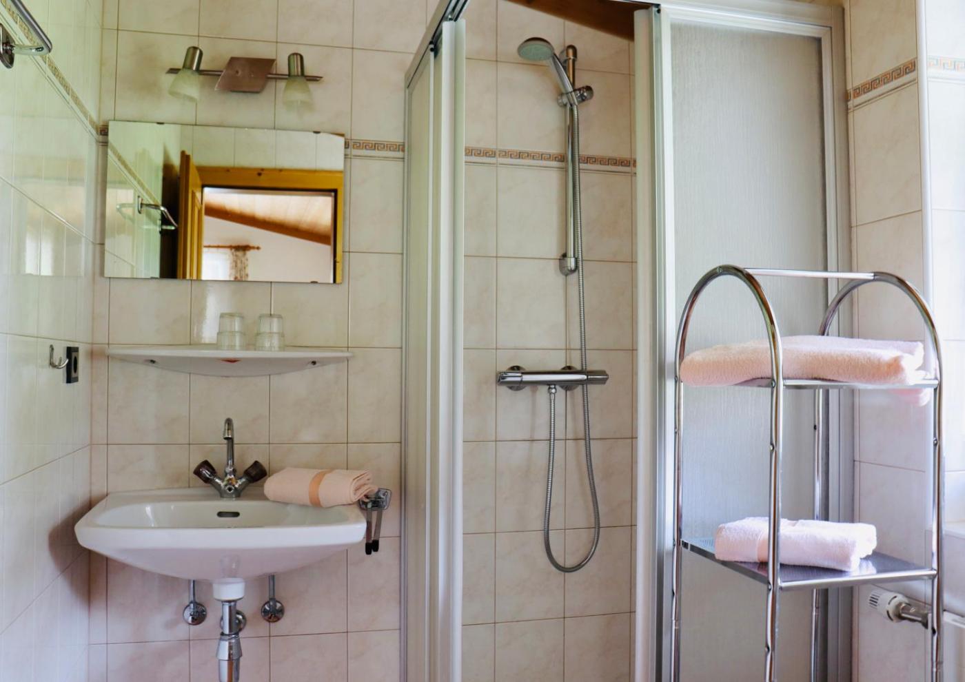 Double Room. The double room provides a wardrobe, parquet floors, as well as a private bathroom featuring a shower. The double room offers heating. The unit offers 2 beds.