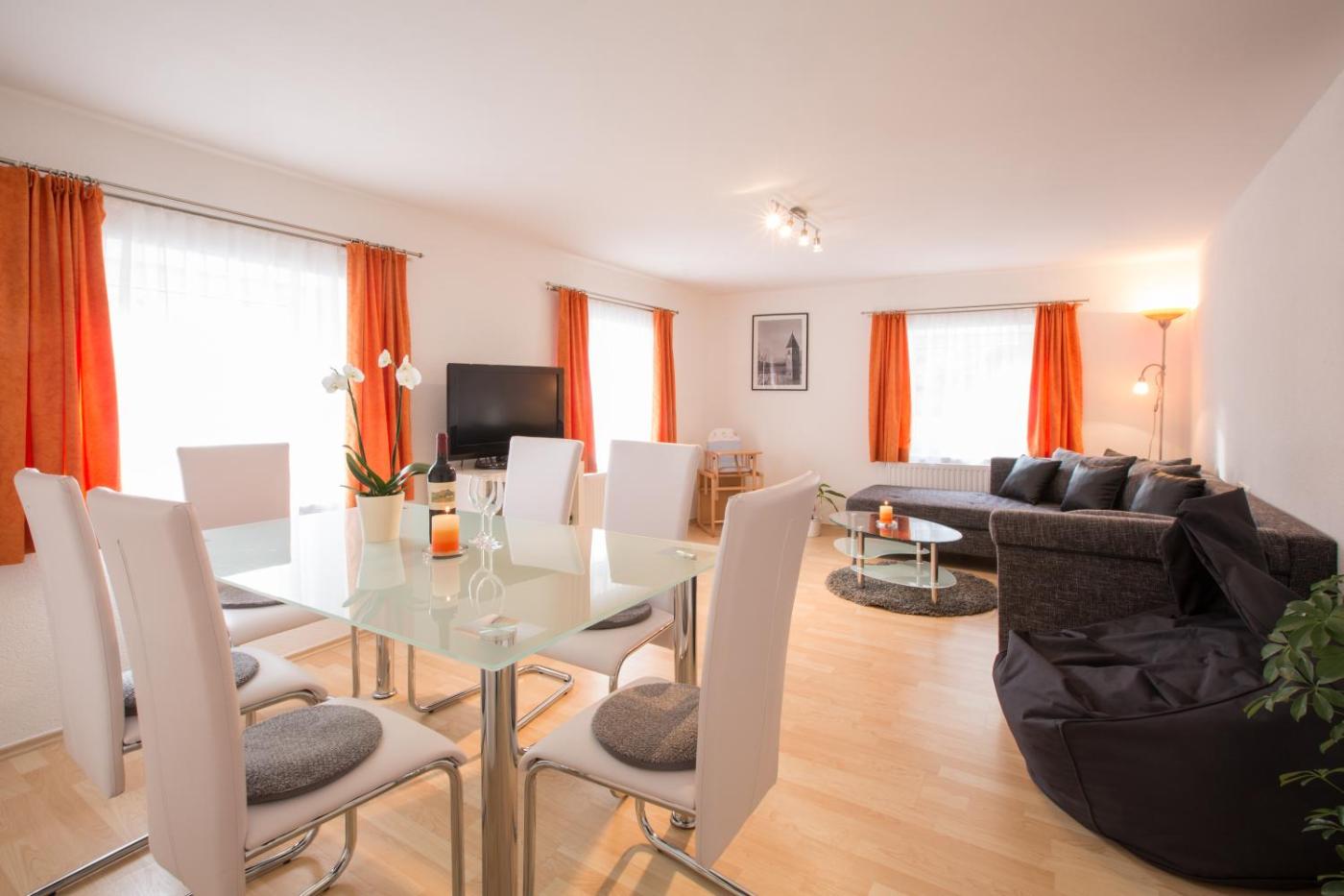 For guests with children, the apartment features outdoor play equipment. Skiing and cycling can be enjoyed nearby, while a bicycle rental service and ski storage space are also available on-site.