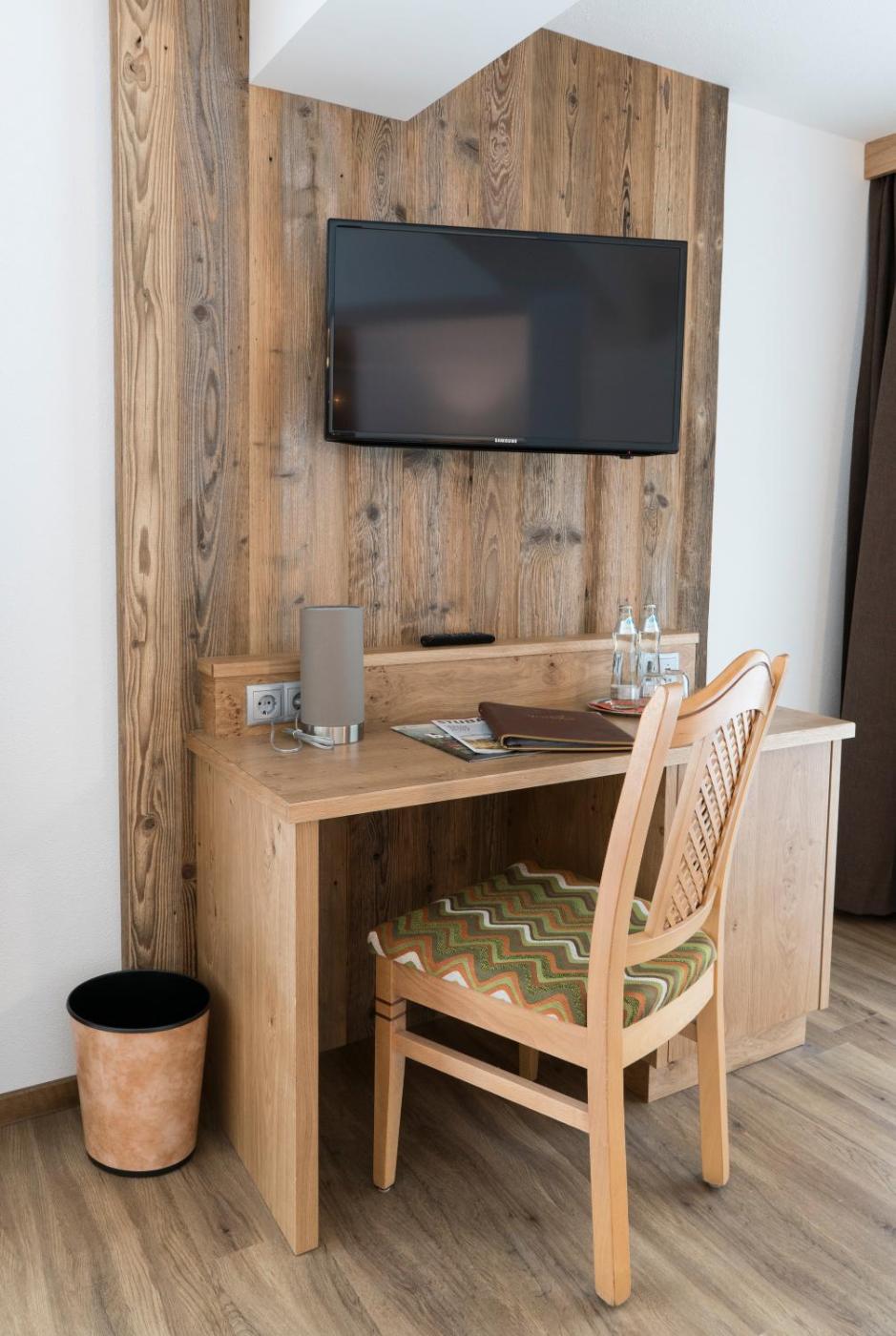 Double Room with Balcony. Modern country house-style room with a flat-screen TV with satellite channels, a safety deposit box, and a private bathroom with shower, toilet and hairdryer. Most of the rooms boast a balcony with stunning views of the Stubai Glacier and the surrounding mountains. ;