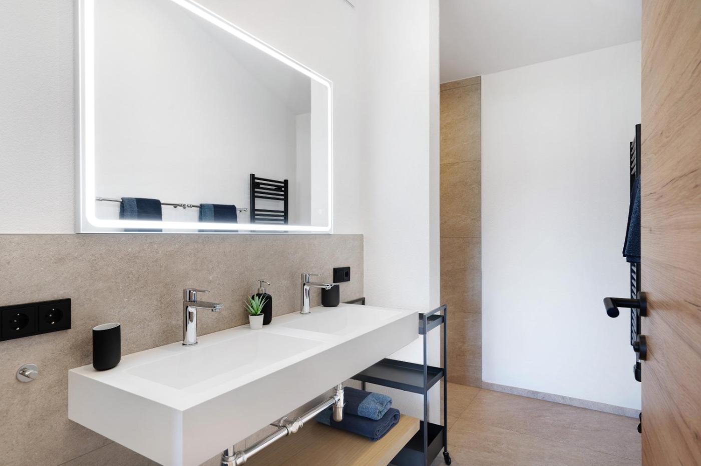 Two-Bedroom Deluxe Apartment with Garden View. Featuring a private entrance, this apartment consists of 1 living room, 2 separate bedrooms and 1 bathroom with a shower and a hairdryer. Guests can make meals in the fully equipped kitchen that features a dishwasher, kitchenware and an oven. Boasting a balcony with garden views, this apartment also provides a coffee machine and a TV with streaming services. The unit offers 3 beds.