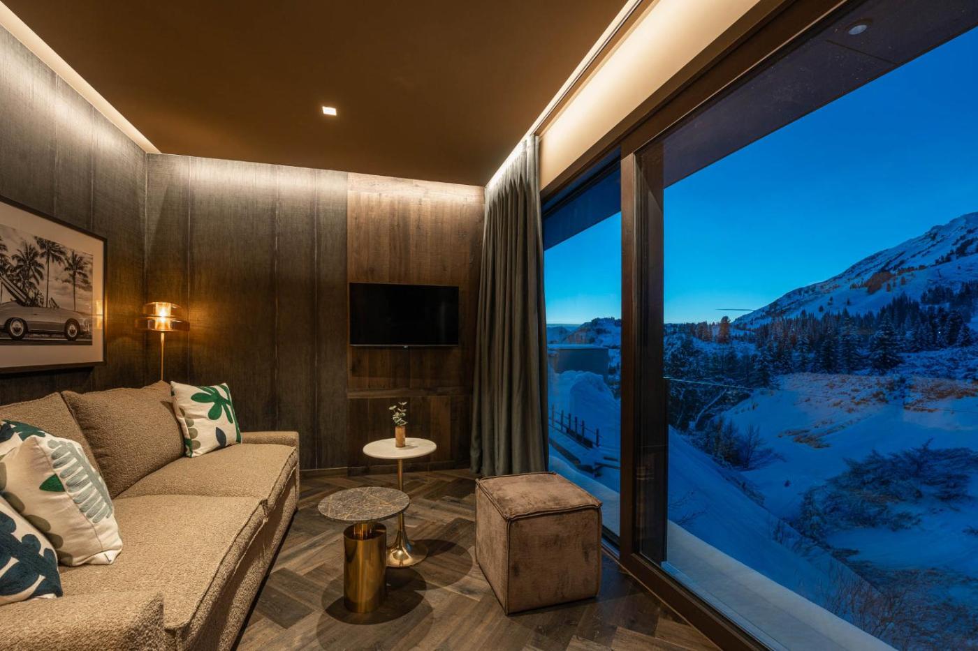 Deluxe Junior Suite. This suite comes with 1 living room, 1 separate bedroom and 1 bathroom with a walk-in shower and free toiletries. The suite features a flat-screen TV with cable channels, a minibar, a seating area, a wardrobe as well as mountain views. The unit has 2 beds. ;