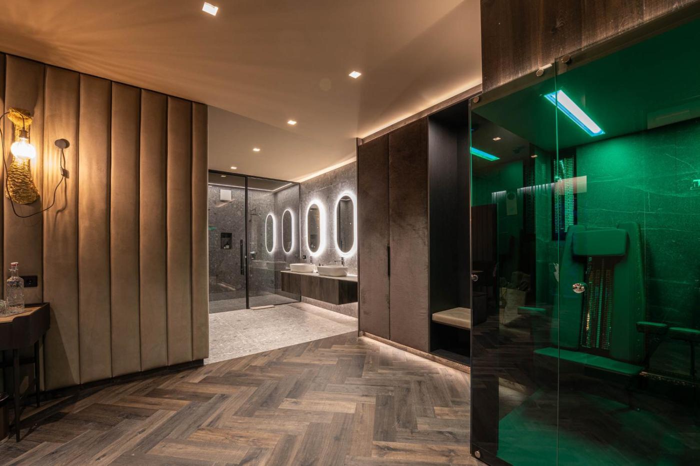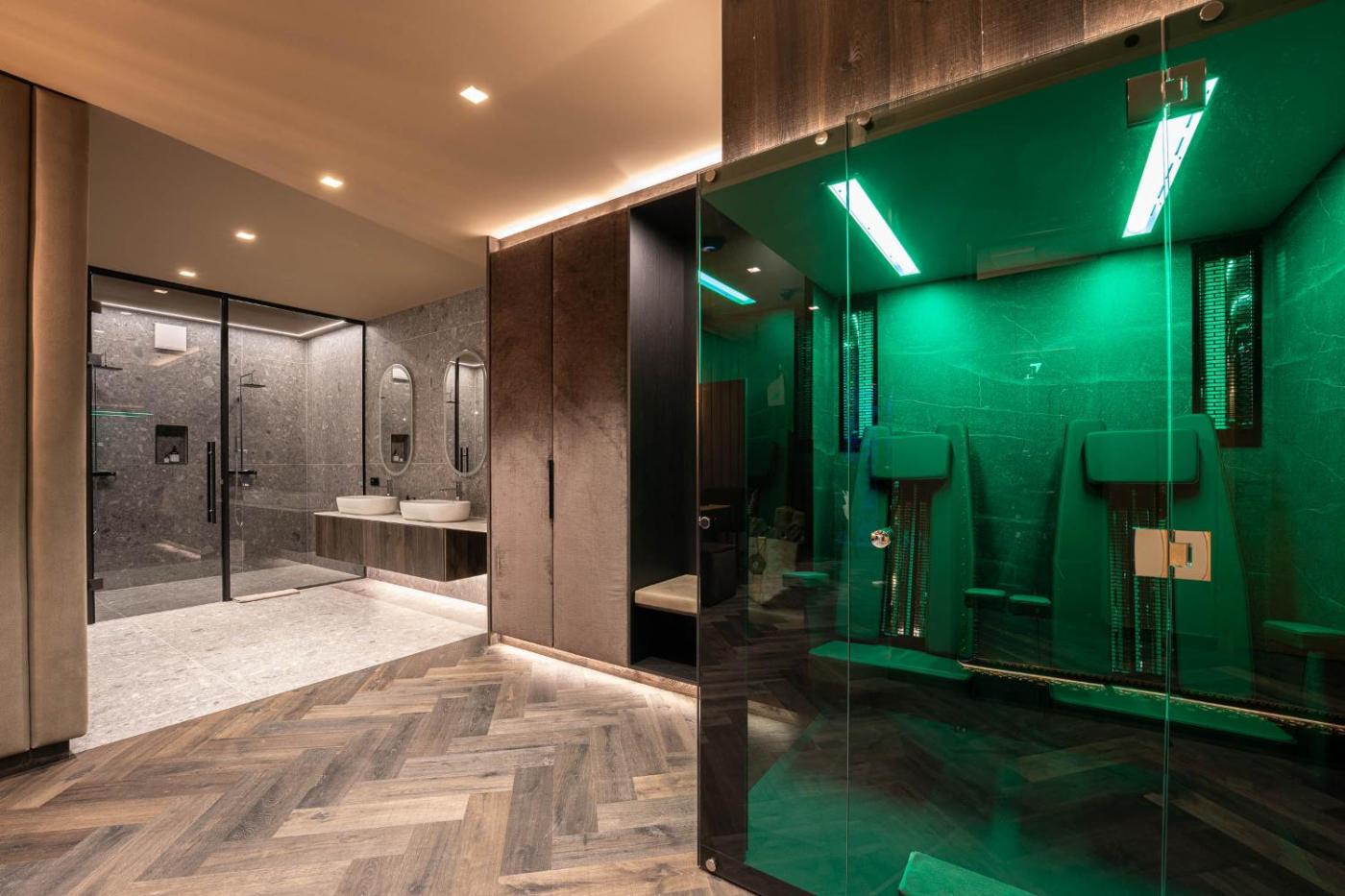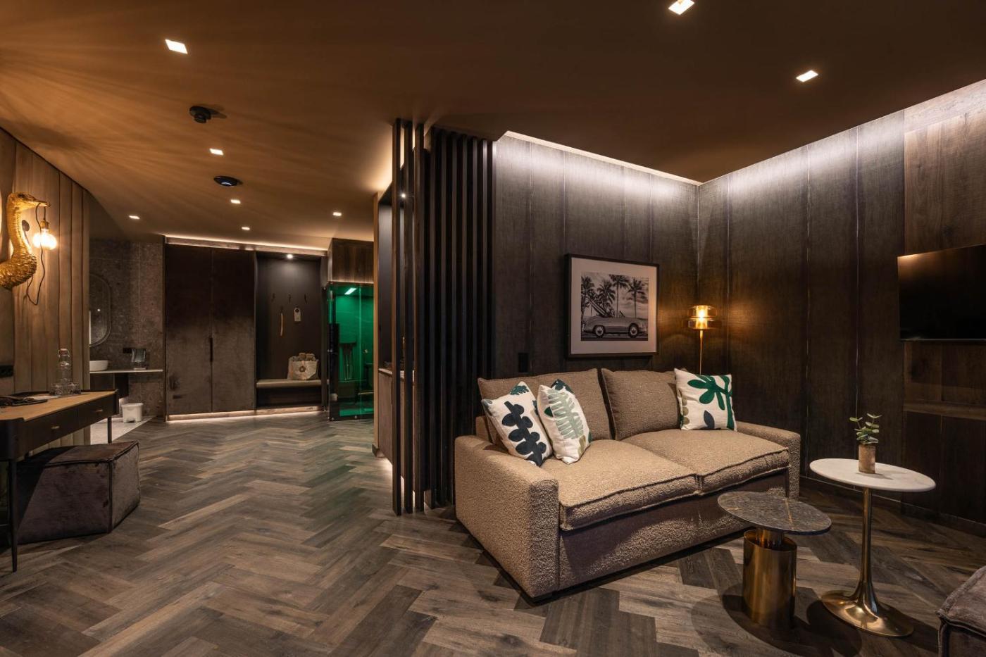 Suite with Sauna. This suites standout feature is the sauna. This spacious suite includes 1 living room, 1 separate bedroom and 1 bathroom with a walk-in shower and free toiletries. Boasting a balcony with mountain views, this suite also offers a minibar and a flat-screen TV with cable channels. The unit has 2 beds. ;