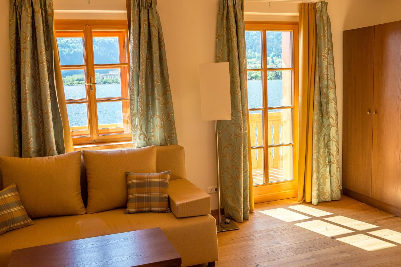 Junior Suite with Lake View. This junior suite has a large balcony with direct lake view and a seating area. There is a minibar, flat-screen satellite TV and a bathroom with shower. ;
