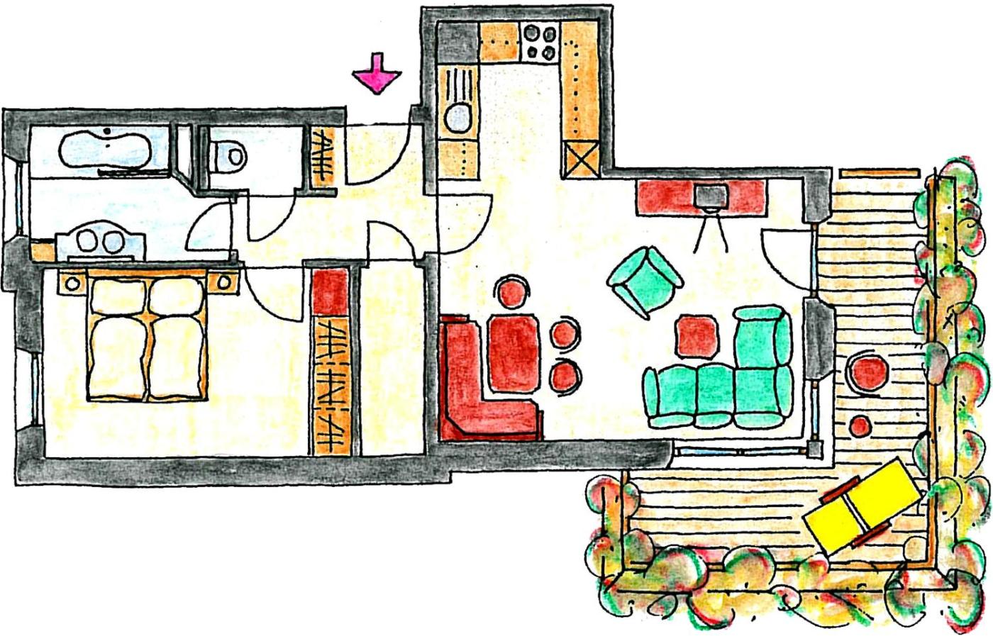 Two-Bedroom Apartment. This spacious apartment comes with 1 living room, 2 separate bedrooms and 1 bathroom with a bath and a shower. Meals can be prepared in the well-fitted kitchen, which features a stovetop, a refrigerator, a dishwasher and kitchenware. Boasting a terrace with mountain views, this apartment also features a coffee machine and a flat-screen TV with cable channels. The unit has 3 beds. ;