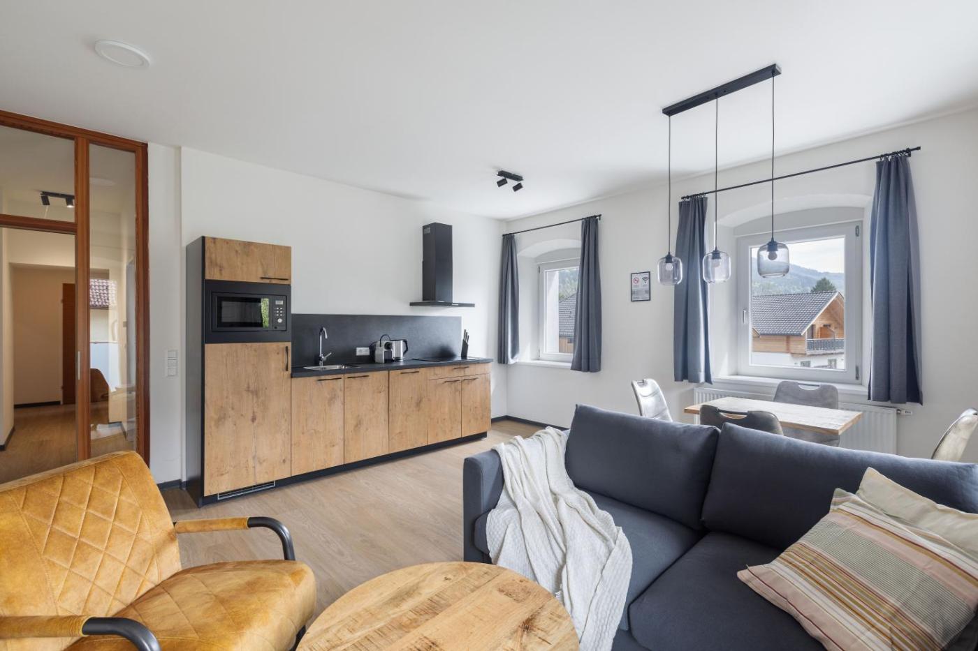 One-Bedroom Apartment. This apartment comes with 1 living room, 1 separate bedroom and 1 bathroom with a shower. In the kitchenette, guests will find a stovetop, a refrigerator, a dishwasher and kitchenware. Boasting a balcony with mountain views, this apartment also features a coffee machine and a flat-screen TV. The unit has 2 beds.