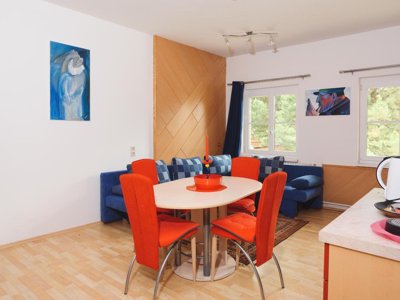 Two-Bedroom Apartment. This spacious apartment comes with 1 living room, 2 separate bedrooms and 1 bathroom with a shower and free toiletries. Guests will find a stovetop, a refrigerator, a dishwasher and kitchenware in the well-equipped kitchen. The apartment also includes a barbecue. The apartment features a flat-screen TV, a washing machine, soundproof walls, a tea and coffee maker as well as garden views. The unit has 3 beds.