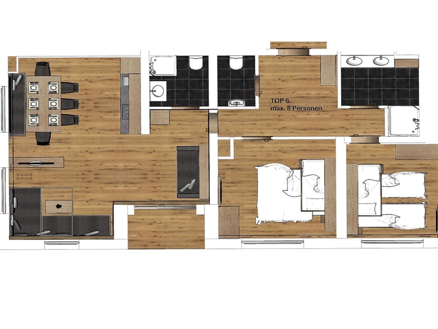 Two-Bedroom Chalet. This spacious chalet is comprised of 1 living room, 2 separate bedrooms and 2 bathrooms with a shower. The well-equipped kitchen features a stovetop, a refrigerator, a dishwasher and an oven. Featuring a balcony with mountain views, this chalet also offers a tea and coffee maker and a TV with cable channels. The unit offers 7 beds.