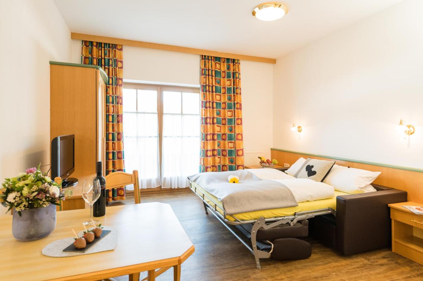 You can play table tennis and darts at the aparthotel, and the area is popular for cycling and hiking. Skiing and horse riding can be enjoyed nearby, while ski-to-door access and ski storage space are also available on-site.