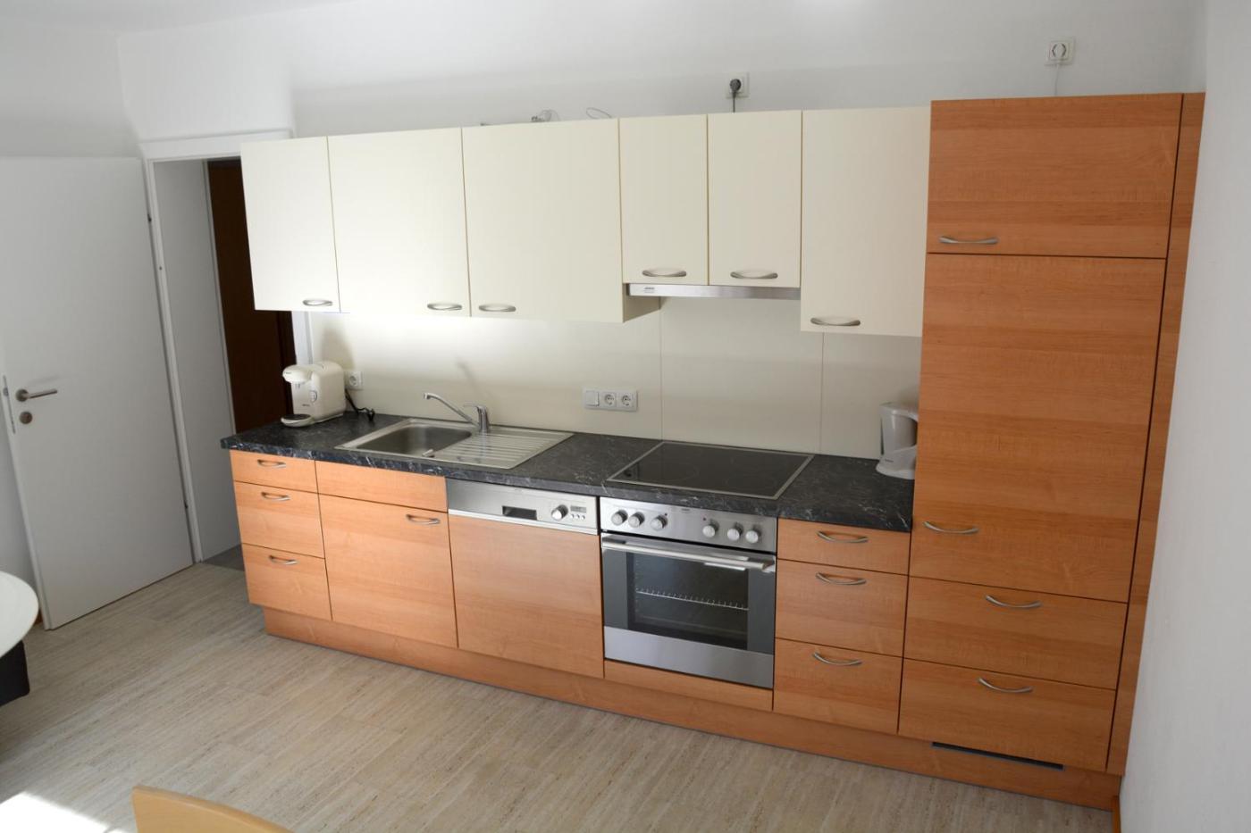 Two-Bedroom Apartment. This apartments special feature is the sauna. The apartment features 2 bedrooms and 1 bathroom with a shower and free toiletries. In the kitchen, guests will find a stovetop, a refrigerator, a dishwasher and kitchenware. Featuring a balcony with garden views, this apartment also provides a tea and coffee maker and a flat-screen TV. The unit offers 2 beds and 2 futons. ;