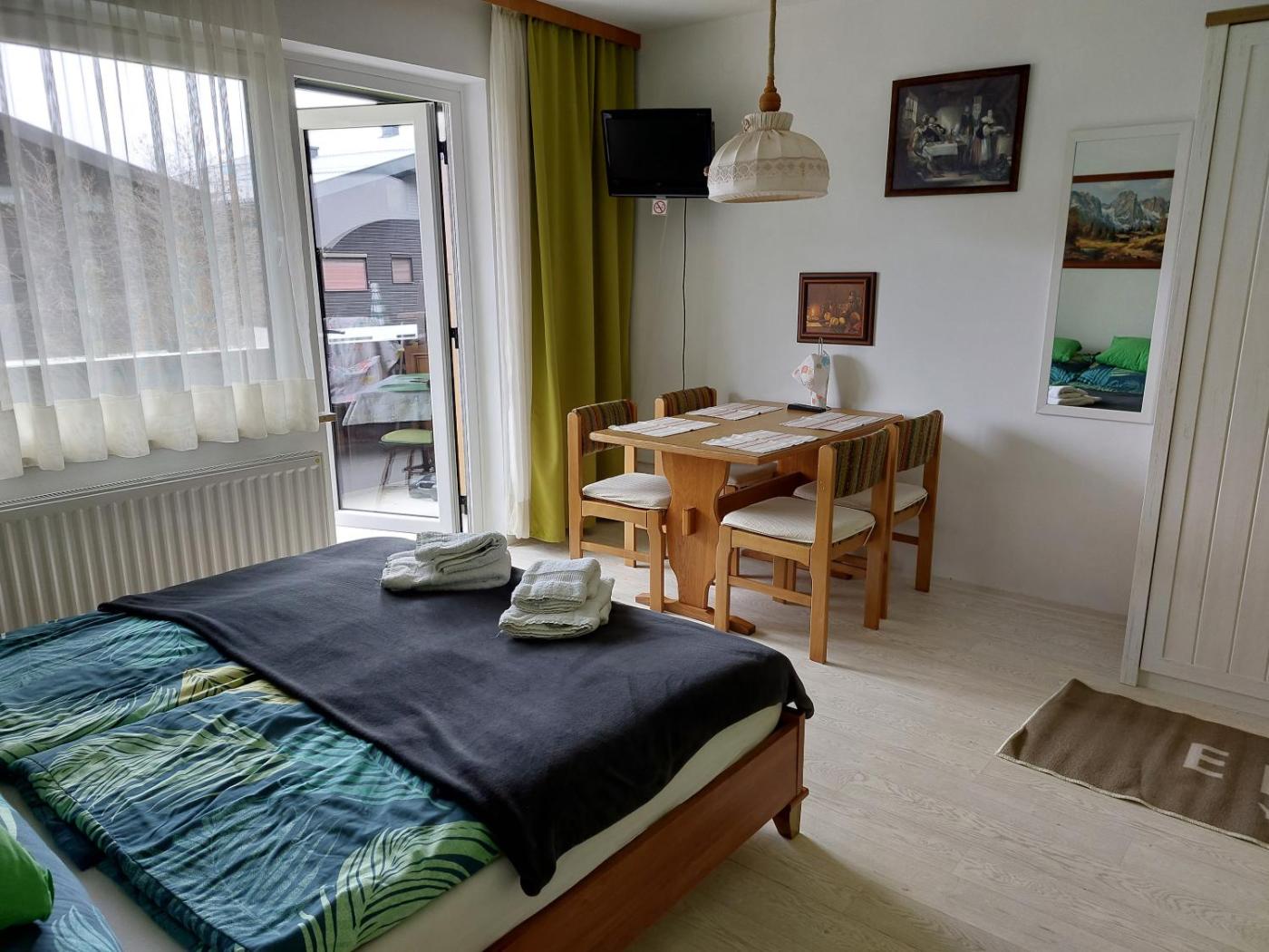 The apartment has 1 bedroom, 1 bathroom, bed linen, towels, a flat-screen TV, a fully equipped kitchenette, and a balcony with mountain views.