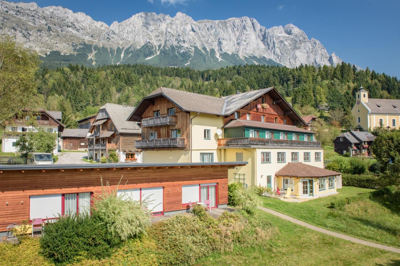 Situated in Sankt Martin am Grimming, 44 km from Admont Abbey, MAYER - Wirtshaus und Dorfhotel features accommodation with a garden, free private parking, a terrace and a restaurant. 10 km from Trautenfels Castle and 19 km from Kulm, the property provides a ski pass sales point and ski storage space. Guests can use the sauna and the hammam, or enjoy mountain views.