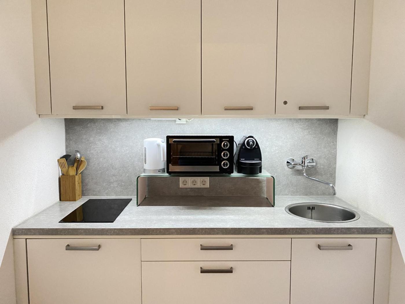 Studio Apartment. This apartments standout feature is the sauna. This apartment is comprised of 1 bedroom, a kitchen and 1 bathroom with a shower and a hairdryer. In the well-fitted kitchen, guests will find a refrigerator, kitchenware, an oven and a microwave. Featuring a balcony with mountain views, this apartment also offers a tea and coffee maker and a TV with satellite channels. The unit offers 2 beds.