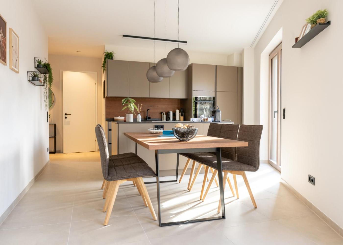 The apartment provides guests with a terrace, river views, a seating area, a flat-screen TV, a fully equipped kitchen with a dishwasher and an oven, and a private bathroom with walk-in shower and a hair dryer. A fridge, a stovetop and kitchenware are also available, as well as a coffee machine and a kettle. At the apartment complex, each unit is fitted with bed linen and towels.