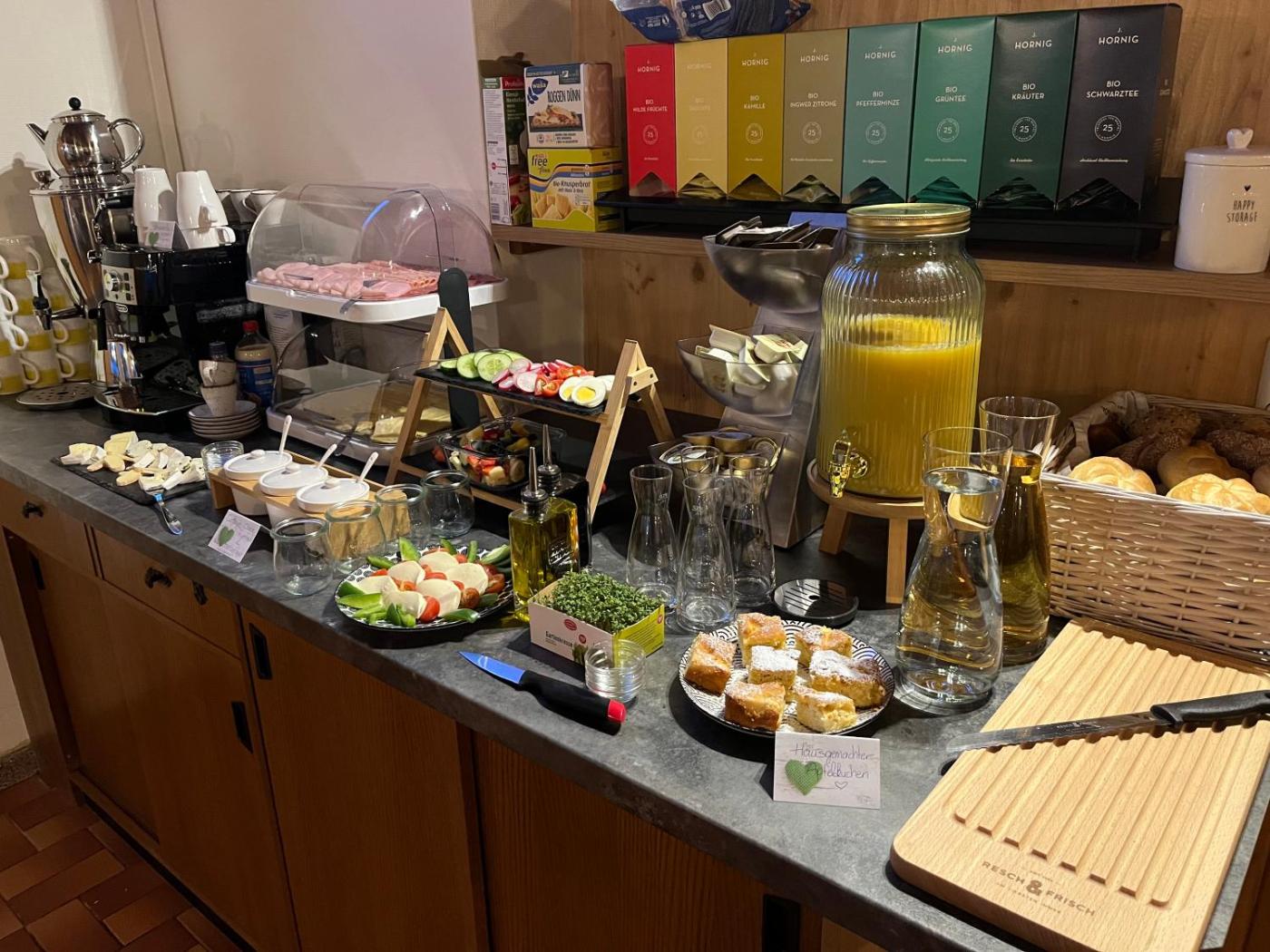 A selection of options including local specialities, fresh pastries and fruits is served for the buffet breakfast. There is a coffee shop, and packed lunches are also available.