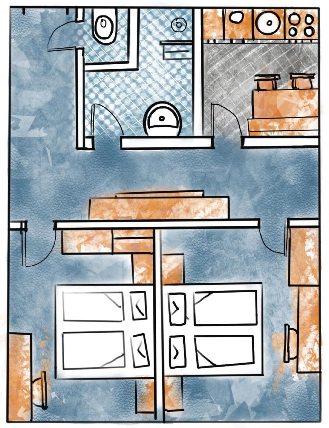 Two-Bedroom Apartment. This apartment comprises a kitchen, a seating area, 2 separate bedrooms and 1 bathroom with a walk-in shower and a hairdryer. Meals can be prepared in the kitchen, which comes with a stovetop, a refrigerator, a dishwasher and kitchenware. Featuring a balcony, this apartment also provides a tea and coffee maker, a dining area and a TV with cable channels. The unit offers 2 beds. ;