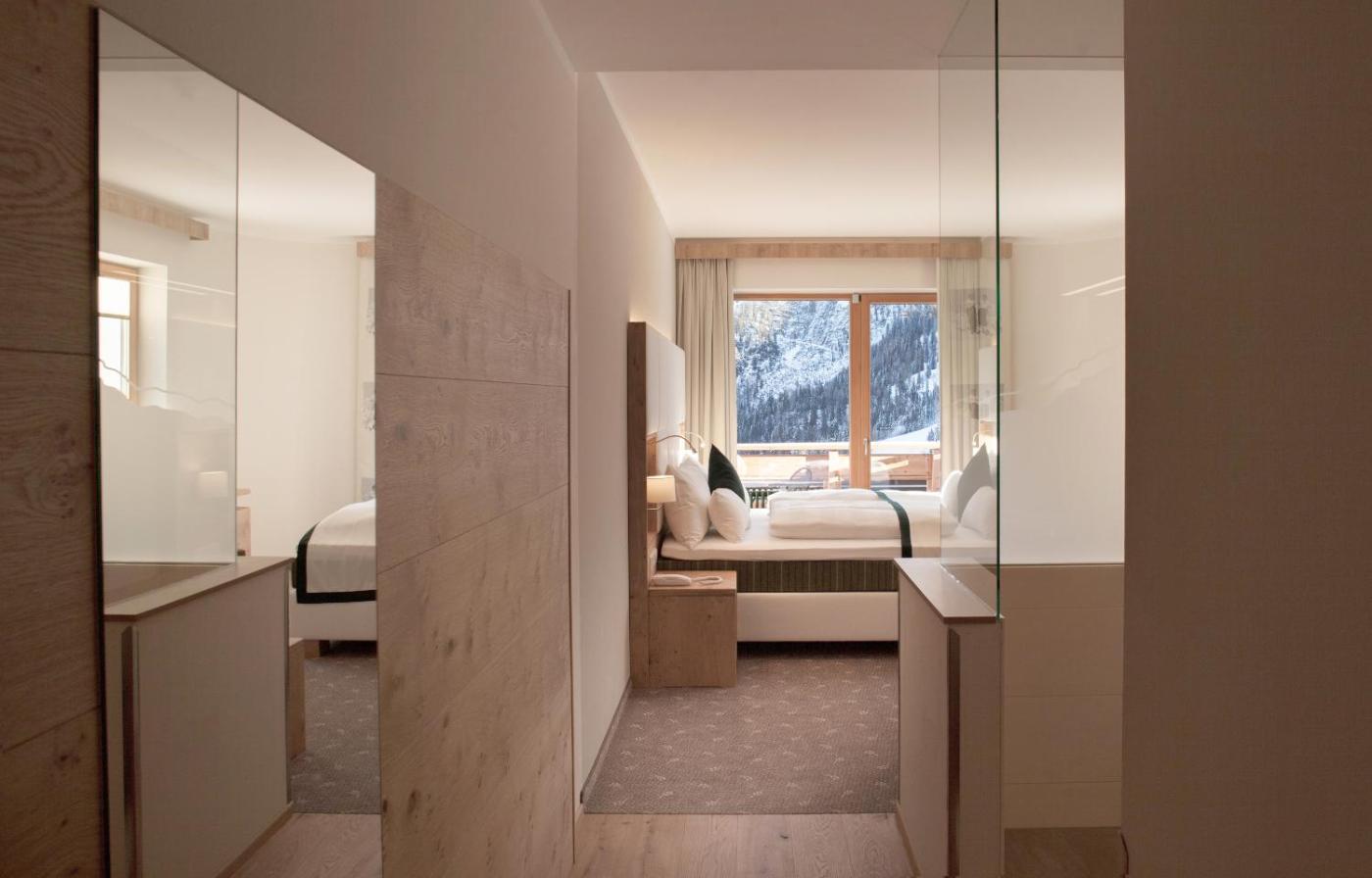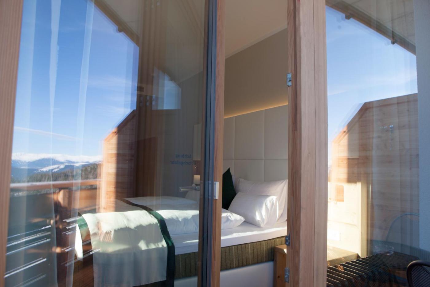 The spacious rooms at the Nassfeld Hotelcome with a balcony overlooking the mountains, a seating area, a flat-screen satellite TV, and a bathroom.