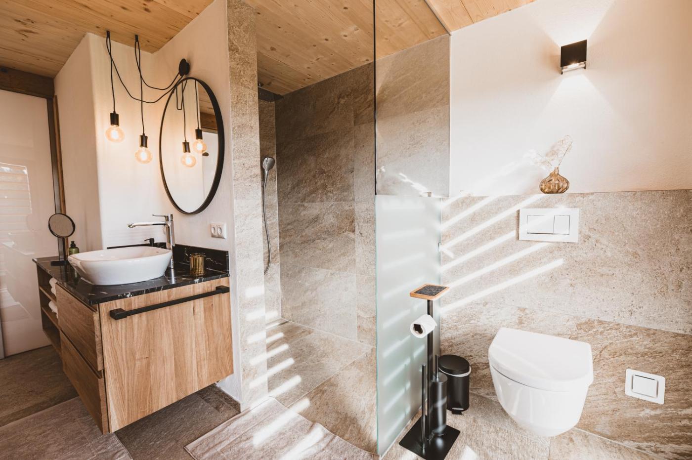 One-Bedroom Chalet. This chalets standout features are the sauna and fireplace. Boasting a private entrance, this air-conditioned chalet includes 1 living room, 1 separate bedroom and 1 bathroom with a shower and a hairdryer. Guests will find a stovetop, a refrigerator, a dishwasher and kitchenware in the well-fitted kitchenette. The chalet also features a barbecue. Featuring a terrace with garden views, this chalet also offers a washing machine and a flat-screen TV with satellite channels. The unit has 1 bed.