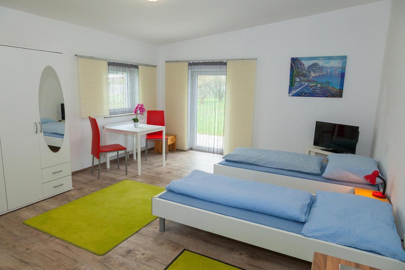 Deluxe Double or Twin Room. The twindouble room offers parquet floors, heating, as well as a private bathroom featuring a bath or a shower. The twindouble room provides a private entrance, soundproof walls, a wardrobe, a flat-screen TV with cable channels, as well as garden views. The unit offers 2 beds. ;