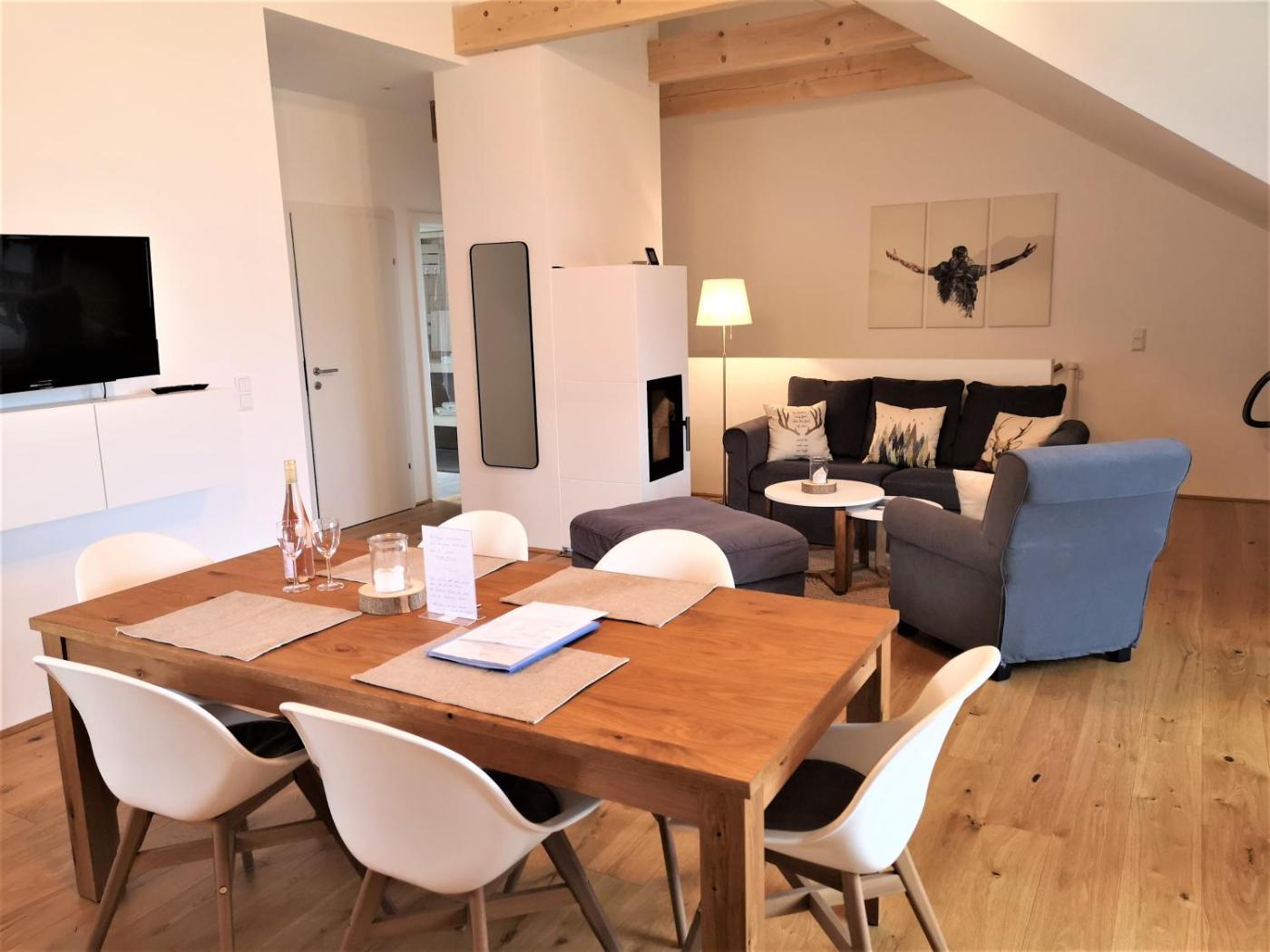 The spacious apartment with a balcony and mountain views has 2 bedrooms, a living room, a flat-screen TV, an equipped kitchen with a dishwasher and an oven, and 1 bathroom with a shower. Towels and bed linen are offered in the apartment. There is also a seating area and a fireplace.