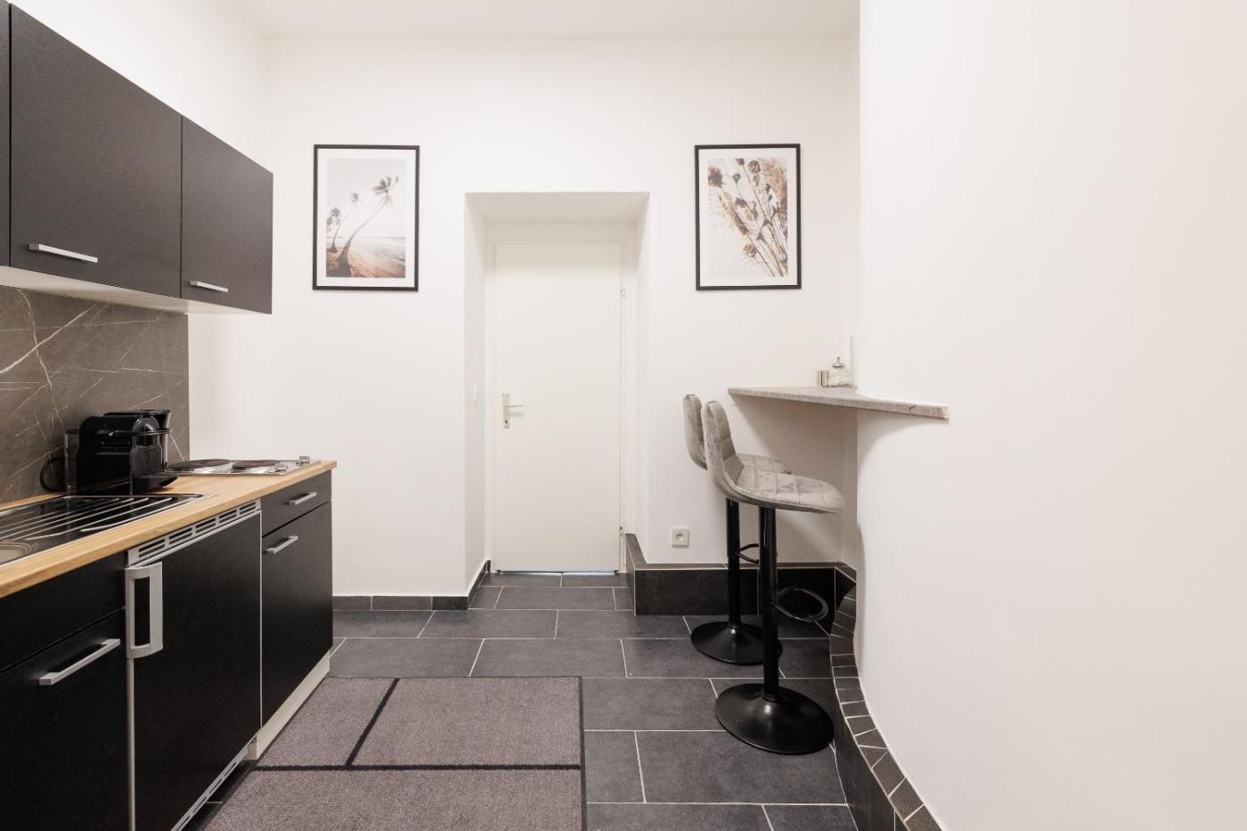 One-Bedroom Apartment. The apartments kitchen, which has a stovetop and a refrigerator, is available for cooking and storing food. The apartment is furnished with a desk and a seating area and features a tea and coffee maker, a dining area and a quiet street view. The unit has 2 beds.