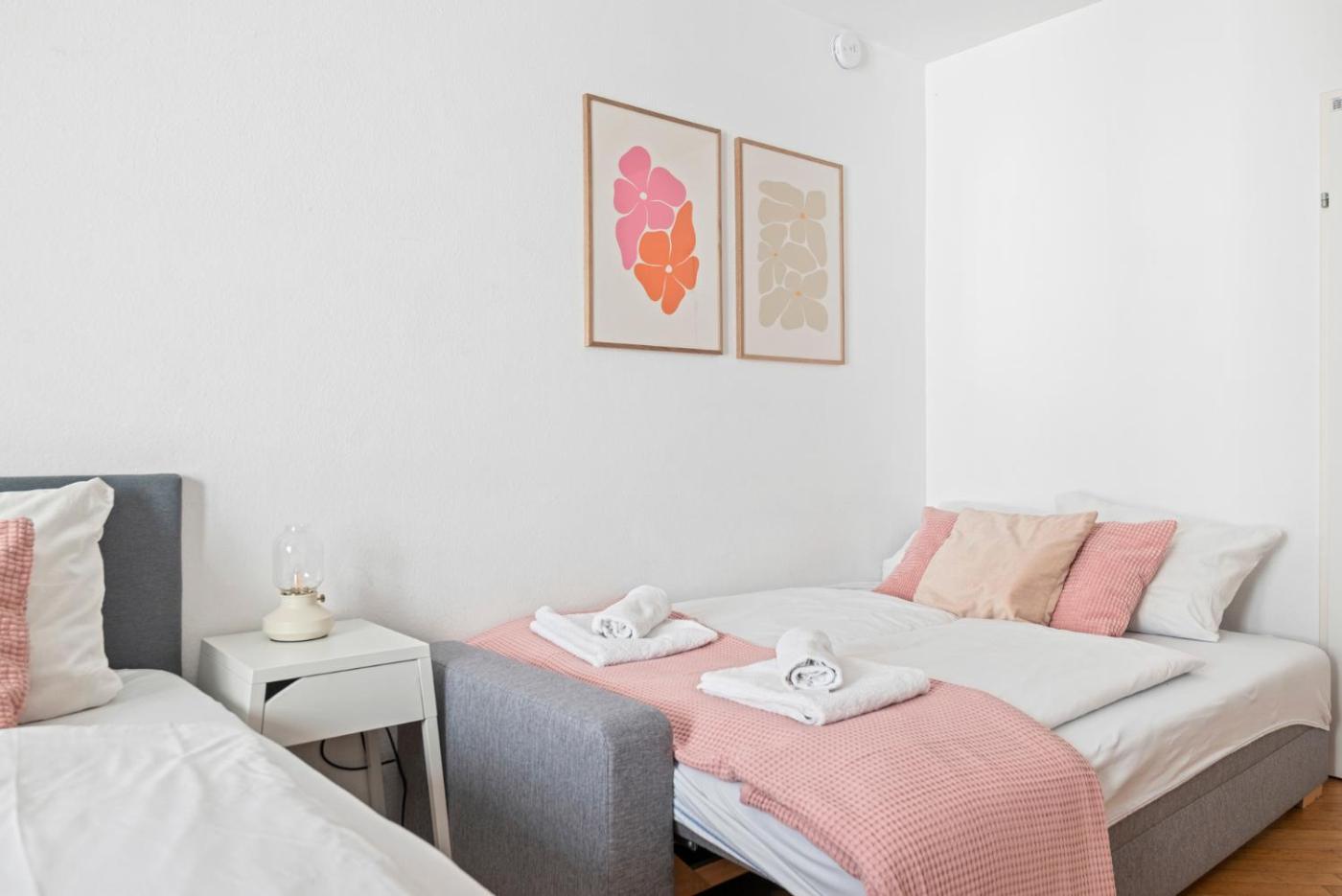 Two-Bedroom Apartment. The spacious apartment has 2 bedrooms and 1 bathroom with a bath and free toiletries. Guests can make meals in the kitchen that has a stovetop, a refrigerator, a dishwasher and kitchenware. The apartment is furnished with a desk and a seating area and features a washing machine, a tea and coffee maker and ancourtyard view. The unit has 4 beds.