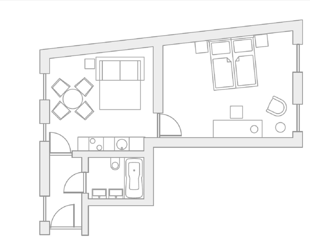 Superior Studio. These studios feature tall double-wing doors, wood panelling, parquet flooring or stucco ceilings, an anteroom, a fully equipped modern kitchenette, a combined comfortable living and sleeping room with 2 beds, and a bathroom with a toilet. Please note that only 1 extra bed for a child from 6 to 12 years is available. ;