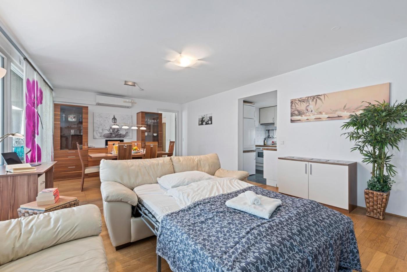One-Bedroom Apartment. Featuring 1 bedroom and 2 bathrooms, this spacious apartment offers a living room and terraceyou can relax. The apartments kitchen is available for cooking and storing food. The apartment provides air conditioning, a washing machine, heating and a flat-screen TV. The unit has 2 beds.