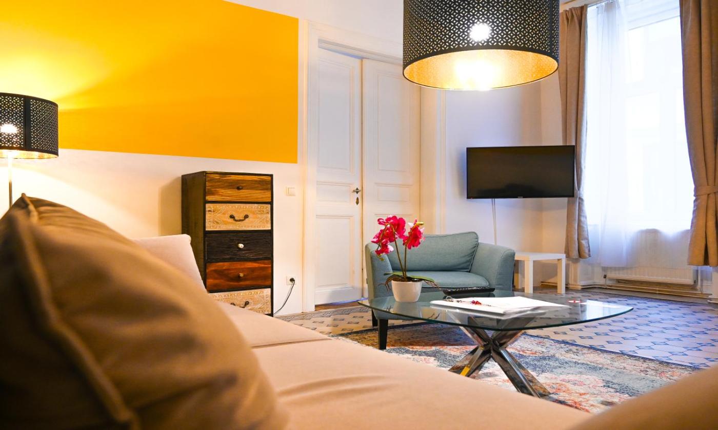 One-Bedroom Apartment. In the kitchen, guests will find a stovetop, a refrigerator, a dishwasher and kitchenware. The spacious apartment offers a flat-screen TV, a washing machine, a private entrance, a tea and coffee maker as well as ancourtyard view. The unit has 2 beds.