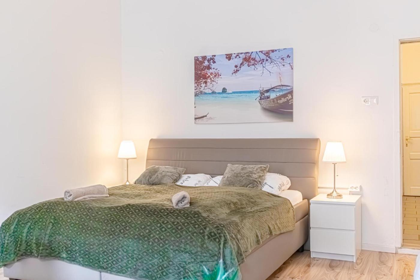 Two-Bedroom Apartment. This apartment features 2 living rooms, 2 separate bedrooms and 1 bathroom with a shower and a hairdryer. Guests can make meals in the kitchen that features a stovetop, a refrigerator, an oven and a microwave. The apartment features a washing machine, a tea and coffee maker, a seating area, heating, as well as a flat-screen TV with streaming services. The unit has 3 beds.